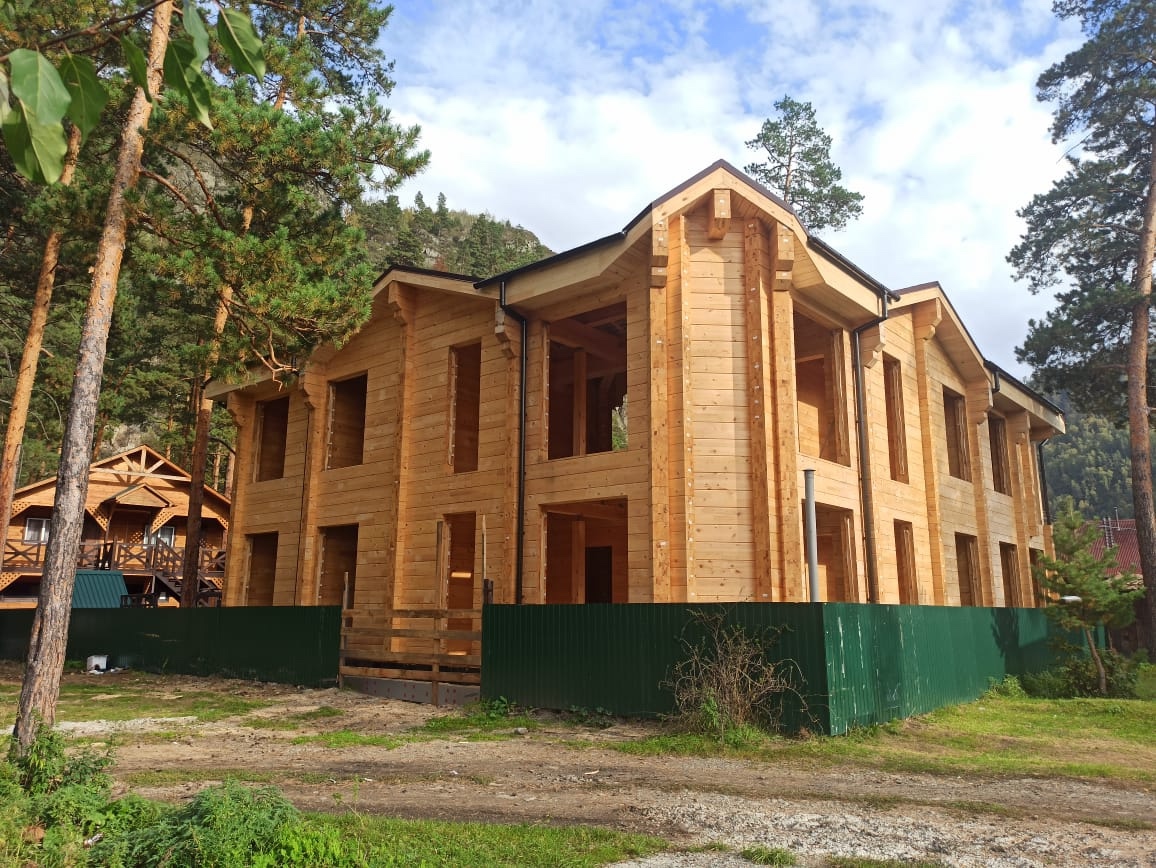 Завершили работы по монтажу финишного покрытия кровли и водосточной системе. Это полностью индивидуальный проект нашего заказчика. Общая площадь гостиницы составляет 310,99 м2.