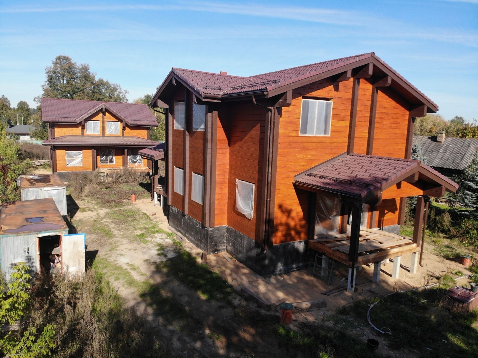 Завершили внешнее окрашивание дома и бани