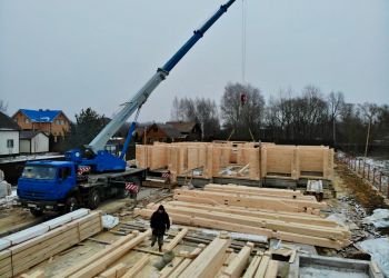 Наша бригада ведет работы по сборке сруба дома. В строительстве мы используем клееный брус собственного производства из сосны сечением 205х270(h) мм. За основу проекта был взят наш типовой проект Турин, но заказчик внес свои индивидуальные изменения. Общая площадь дома составляет 424,61 м2.