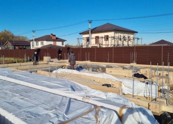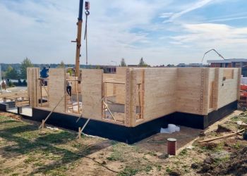 Сейчас наша бригада ведет подготовительные работы для заливки фундамента. Также мы производим заливку плиты дома. Дом будет построен из клееного бруса из сосны сечением 205х270(h) мм. За основу проекта был взят наш типовой проект Турин, но заказчик внес свои индивидуальные изменения. Общая площадь дома составляет 424,61 м2.