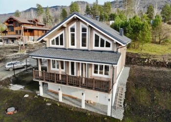 В строительстве мы использовали клееный брус собственного производства из сосны с сечением 185х205 мм. Также в этом доме мы установили деревянные окна нашего производства из сосны. Общая площадь дом составляет 184 квадратных метра. Это полностью индивидуальный проект нашего заказчика.