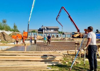 Наша бригада приступила к заливки фундамента дома. Следующая стадия строительства — сборка сруба. Дом будет построен из клееного бруса из сосны с сечением 205х185 мм. Это полностью индивидуальный проект нашего заказчика. Общая площадь дома составляет 426,98 квадратных метров.