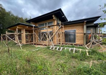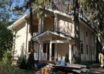 Мы завершили внутреннее окрашивание. Сейчас наша бригада приступила к внешнему окрашиванию дома. В строительстве мы использовали клееный брус собственного производства из сосны сечением 205х270(h) мм. Это полностью индивидуальный проект нашего заказчика. Площадь дома составляет 290,23 м2.