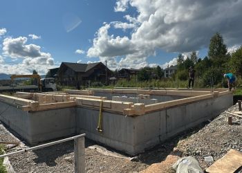 Выполнили заливку отмостки и дорожек. Дом построен по нашему типовому проекту Анси с индивидуальными изменениями планировки.