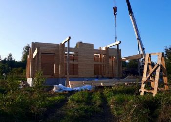 Приступили к сборке сруба. Это полностью индивидуальный проект нашего заказчика. Общая площадь двухэтажного дома составляет 231,23 квадратных метров.