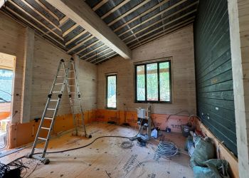 Наши бригады приступили к разводке электрики и ОВК (отопление, вентиляция и кондиционирование) в доме. Дом построен по нашему типовому проекту Анси с индивидуальными изменениями планировки.