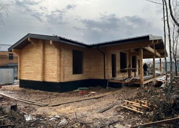 Наша бригада приступила к сборке сруба банного комплекса. В строительстве мы используем клееный брус из сосны и кедра собственного производства с сечением 245х185 мм. Полностью индивидуальный проект нашего заказчика. Общая площадь банного комплекса составляет 262 квадратных метра.