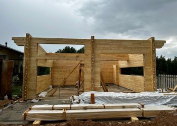 Дом строится по индивидуальному проекту нашего заказчика. Общая площадь составляет 684 квадратных метра. В строительстве мы используем клееный брус собственного производства из сосны и кедра с сечением 245х270мм. Если у вас есть вопросы, то мы с радостью ответим на них и расскажем вам все о строительстве из клееного бруса!