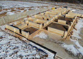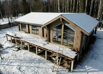 Мы приступили к сборке сруба. Дом строится из клееного бруса собственного производства из кедра сечением 245х270 мм. Это индивидуальный проект нашего заказчика. Общая площадь дома составляет 641,3 квадратных метров.