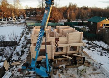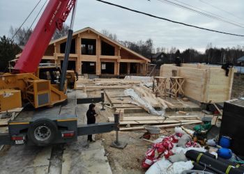 Наша бригада приступила к сборке сруба дома. В строительстве мы используем клееный брус из сосны сечением 205х185 мм. Это полностью индивидуальный проект нашего заказчика. Общая площадь дома составляет 170 квадратных метров.