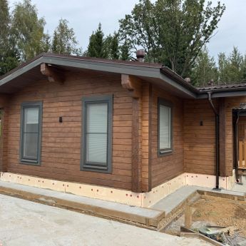 Выбрали типовой проект, но внесли небольшие изменения. Понравилось, что компания пошла навстречу и адаптировала проект под наши пожелания. Все работы выполнены в срок, претензий к качеству нет. Отдельное спасибо за помощь в планировке участка.