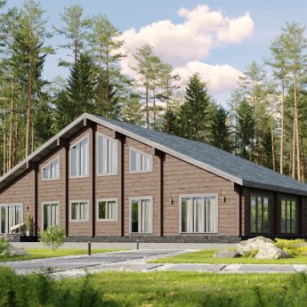 Клееный брус — современный, эстетичный и безопасный материал. Благодаря высокотехнологичности его производства — время на монтаж дома сокращается, а также появляется возможность круглогодичного строительства, чем не могут похвастаться другие технологии.