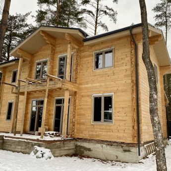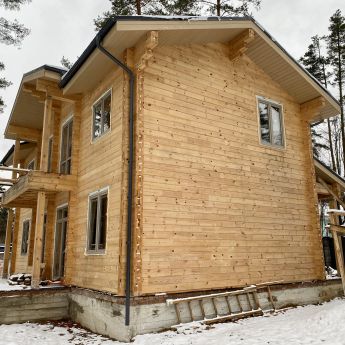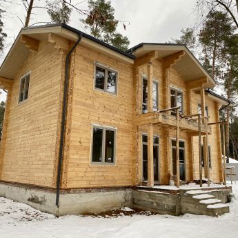 Дом из клееного бруса построенный по индивидуальному проекта заказчика.