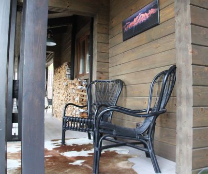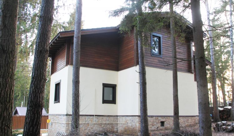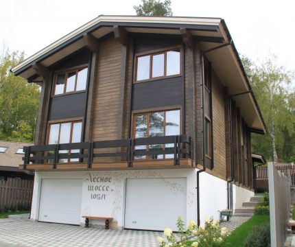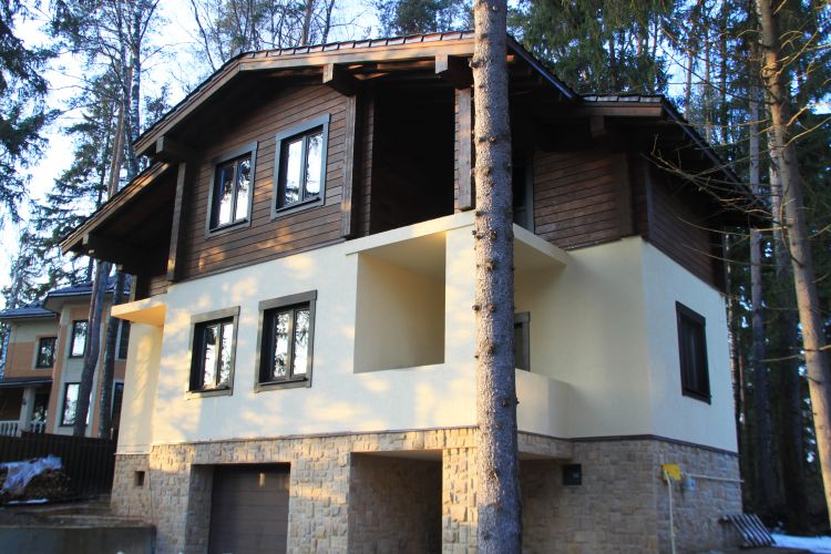 Для возведения второго этажа коттеджа используется клееный брус из лиственницы и кедра.