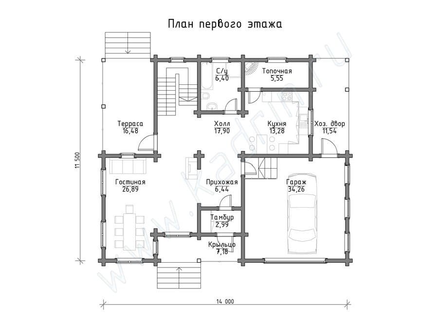 Также, в доме есть большая гостиная, совмещенная с кухней-столовой.