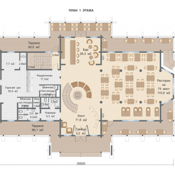 Базовые планировки Дом из клееного бруса Ресторанный комплекс на Алтае 1
