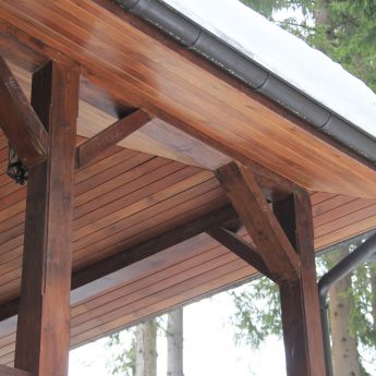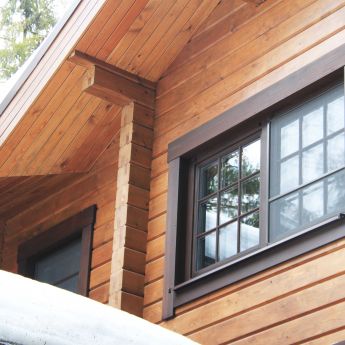 Для строительства выбран комбинированный клееный брус из лиственницы и кедра, изготовленный на нашем производстве.