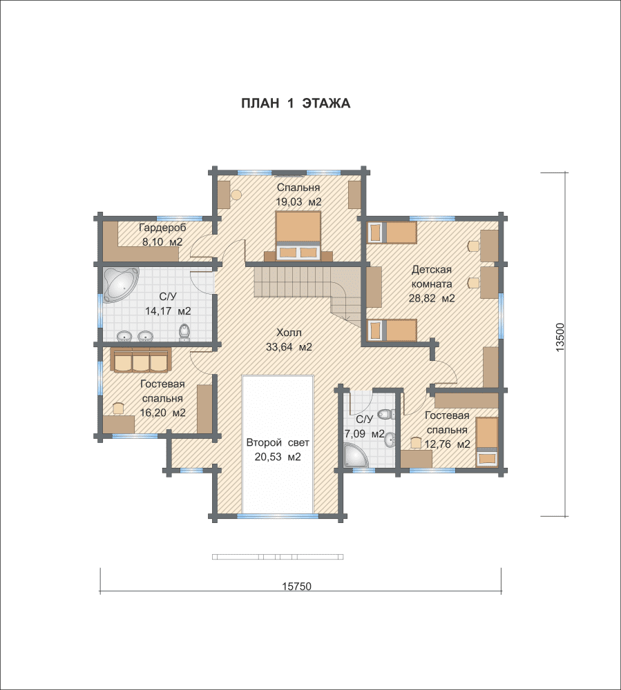 • стеновой комплект: брус клееный 185(h)х205 мм (сосна) с конструкционным запилом чашек под архитектурно-планировочное решение Заказчика