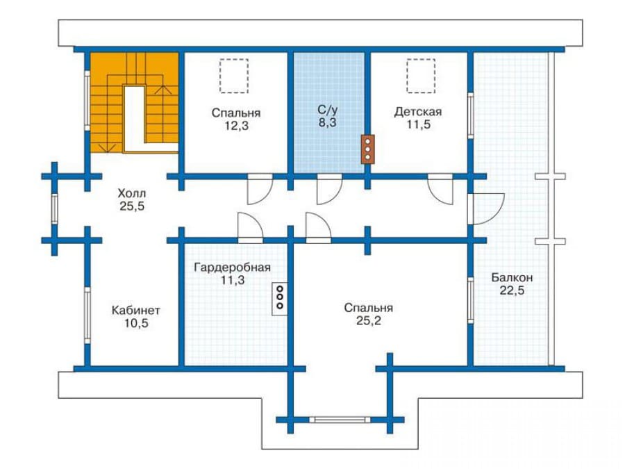 Полезная площадь проекта "Портленд" - 230 кв.м. По проекту "Портленд" - двухэтажное здание, которое также оснащено крыльцом и террасой.Площадь террасы - 22,5 кв.м.