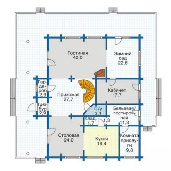• стеновой комплект: брус клееный 185(h)х205 мм (сосна) с конструкционным запилом чашек под архитектурно-планировочное решение Заказчика
