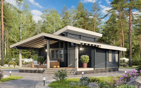 Одноэтажная баня из клееного бруса, полезная площадь которого составляет 120 кв. м.